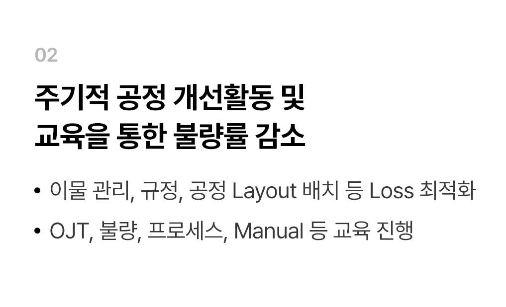 - 이물 관리, 규정, 공정 Layout 배치 등 Loss 최적화